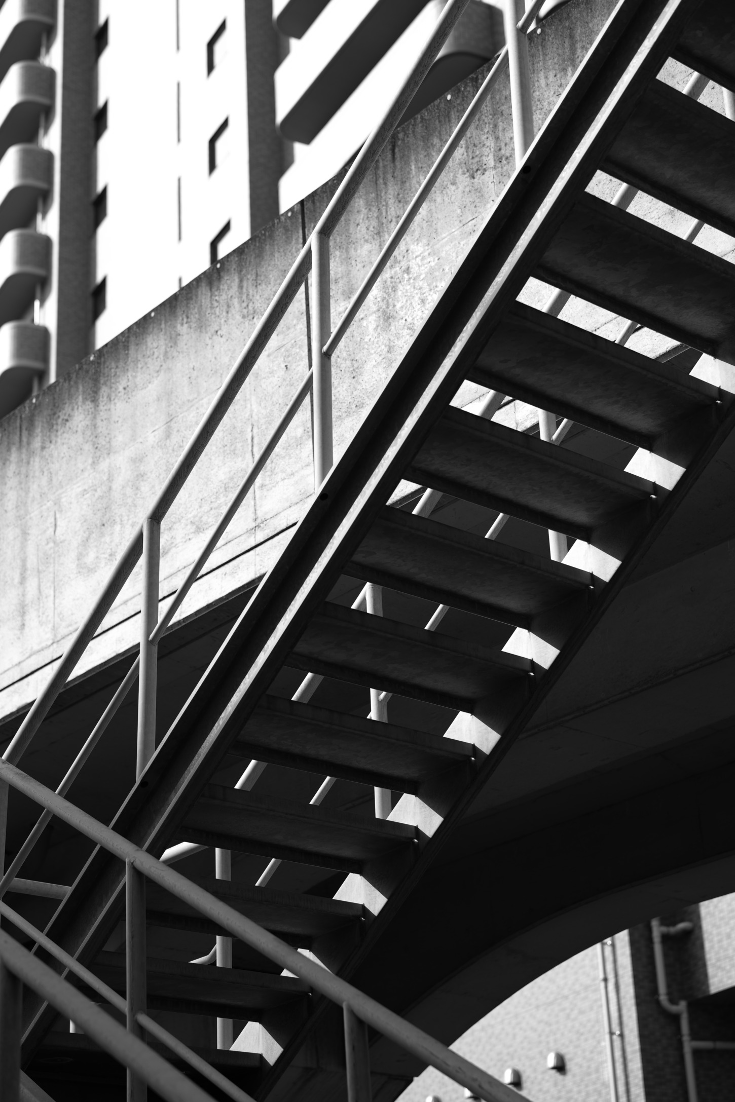 松浦鉄道高架の非常階段|モノクロが魅せる金属のグラデーション