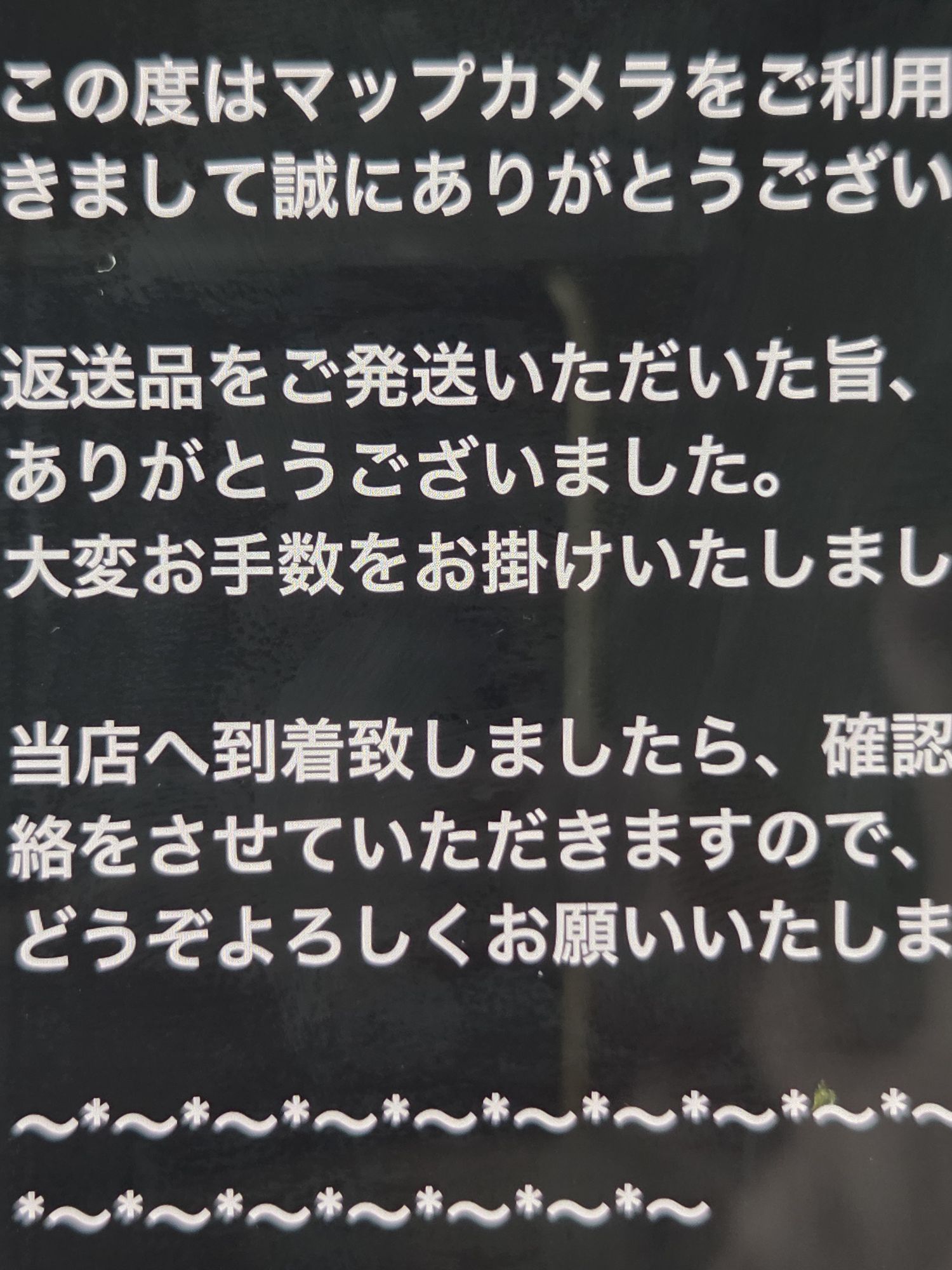 マップカメラさんからお問い合わせの返信が返ってきて、内容は予想通り