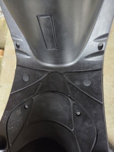 収納はこれだけですが、ハンドル下にガソリン添加剤なら置ける程度のスペースはあります。