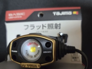 仕事の相棒として購入したのは、タジマデザインのヘッドライトED 500lm フラッド照射セット。価格1万円程度と高い。しかしAmazonのよく分からないメーカーのヘッドライトを買うよりもメーカー保証がしっかりとしている。
