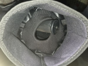 ということでバイクに装着して使ってみましたが、ハンドル操作は十分に出来るだけ確保されていました。問題としてはヘルメットのガードをを上げたりするときに手を抜くことが必要となり、運転中はガードをあげるときに注意が必要となること。
