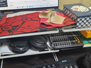 ノートパソコンだとキータッチに違和感があって困っていた。高さも足りない。下を見るようになって猫背になってしまう。ラックを置くことで高さの保持、そしてキーボードを置くところを確保した。